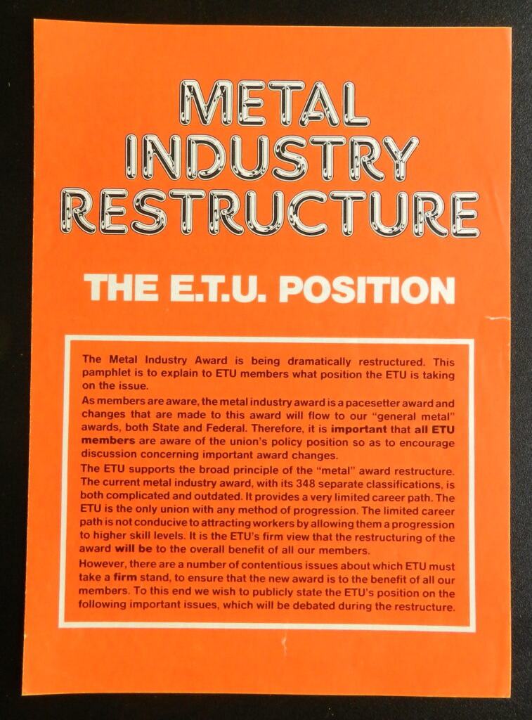 4. Metal Industry Restructure: The ETU Position; ETU National leaflet;1989