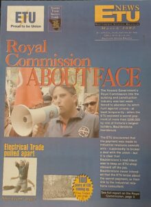 On 6 February 2002, the Electrical Trades Union of Victoria was asked to appear before the Royal Commission’s court for the first time. The opinions of electrical trades’ unionists, like me, were that the union would be guilty until proven innocent. ETU State Secretary, Dean Mighell was summoned on this day and unionists of all persuasions gathered at the base of the Collins Street Towers in Melbourne where the Royal Commission was based.